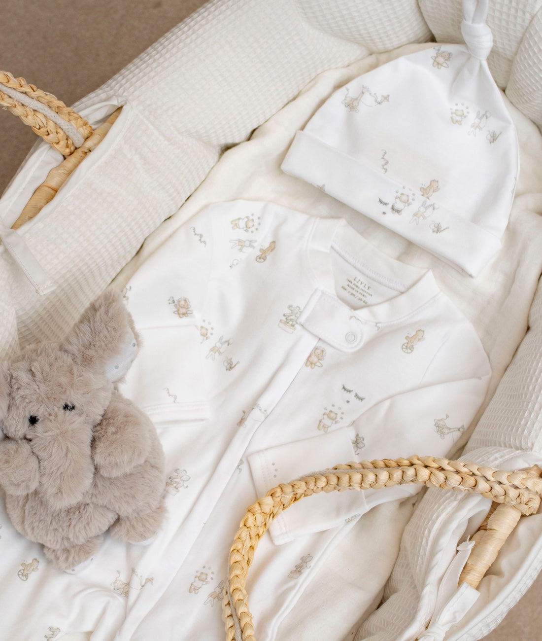 Färgskalan i babykategorin är varsamt framtagen för att förstärka den lugna, drömska känslan som följer LIVLYs designfilosofi. Här möts mjuka toner med nordiska ljusa nyanser och klassiska pasteller som känns lika vackra i vagnen som i spjälsängen. Mönster, illustrationer och texturer är diskreta och utformade för att skapa en sammanhängande look utan att ta över.